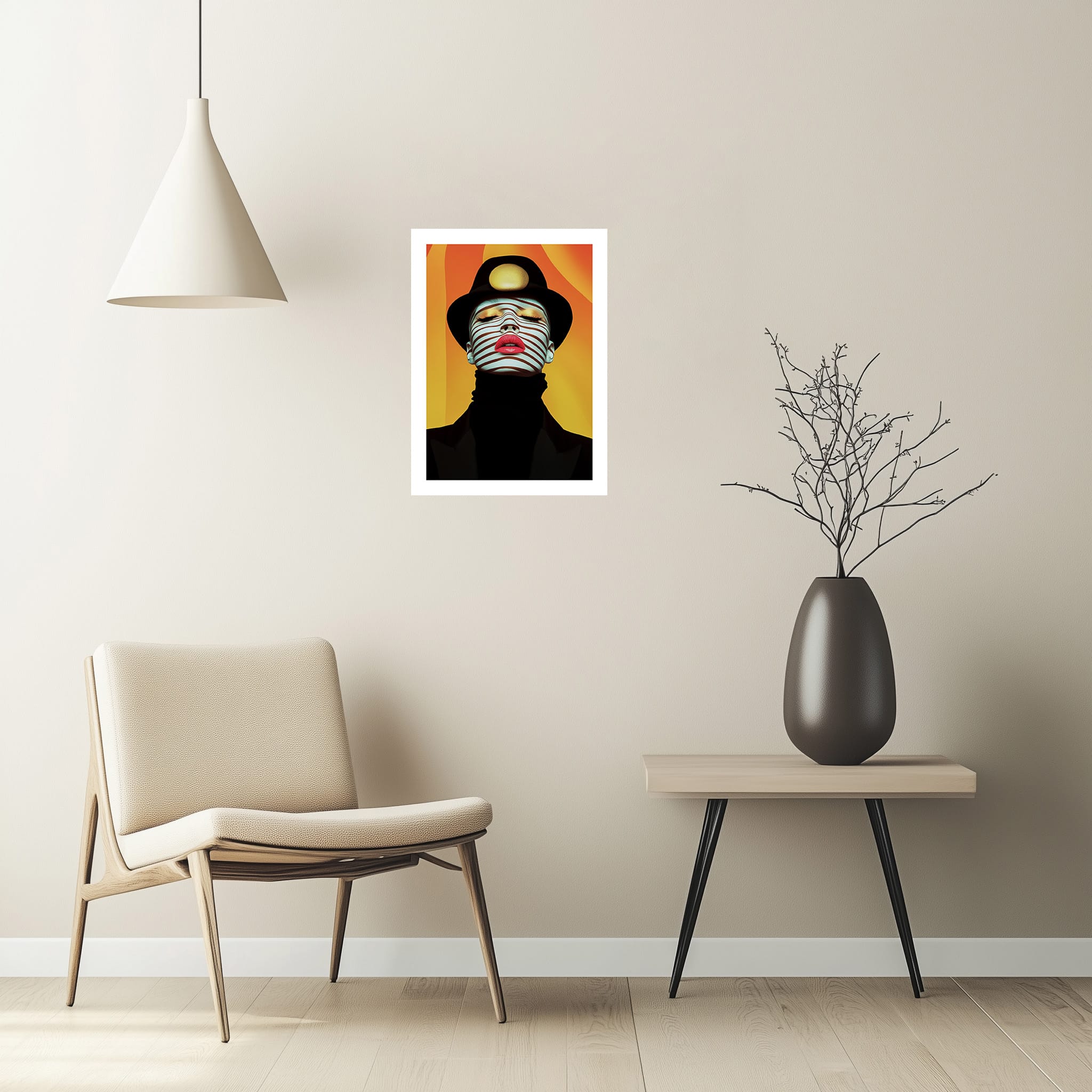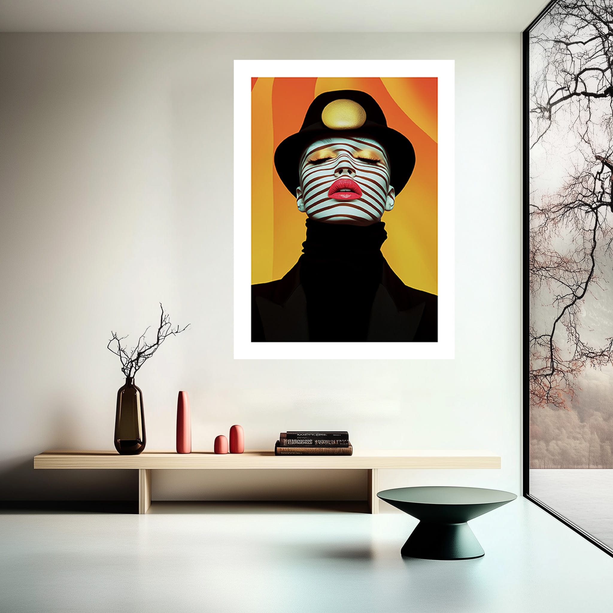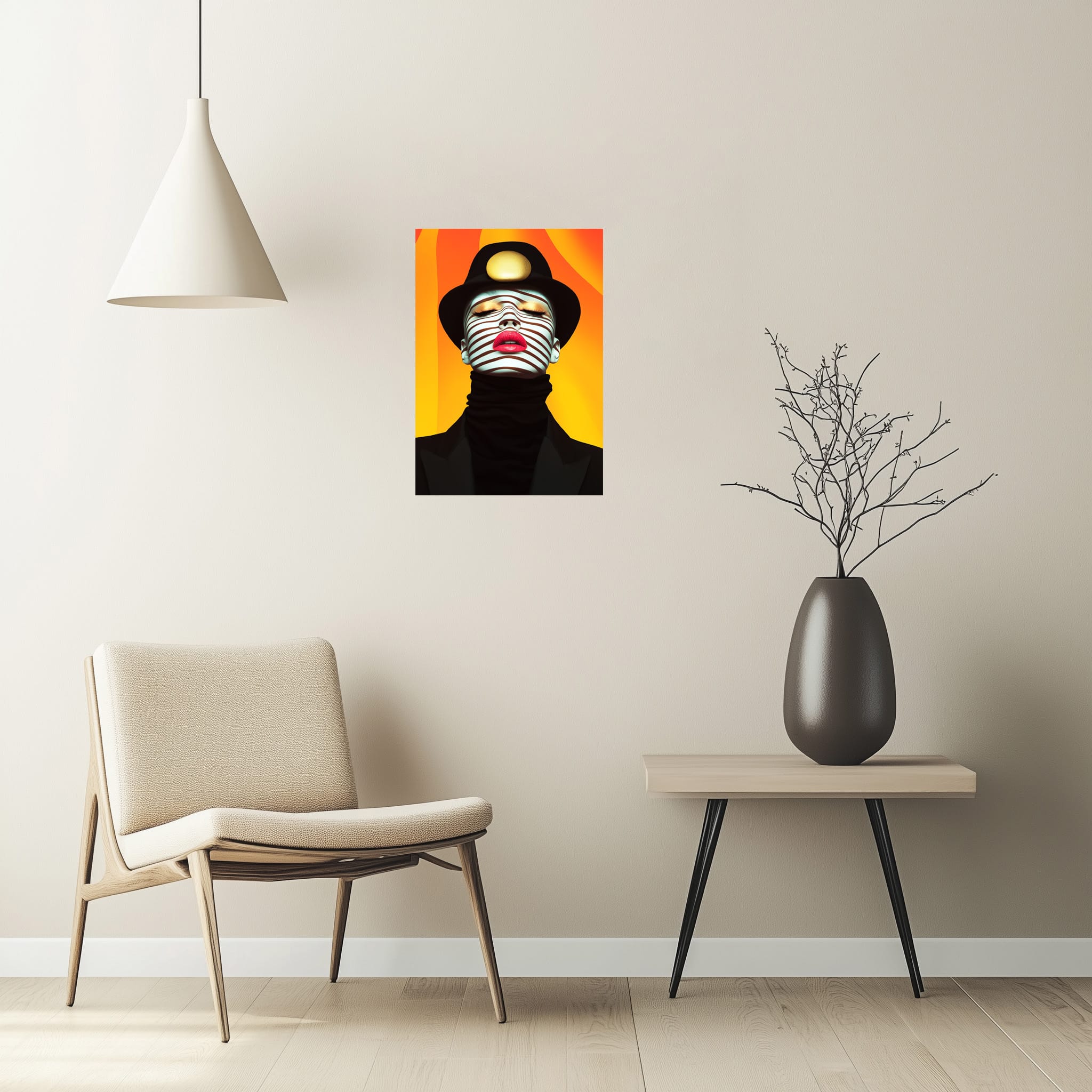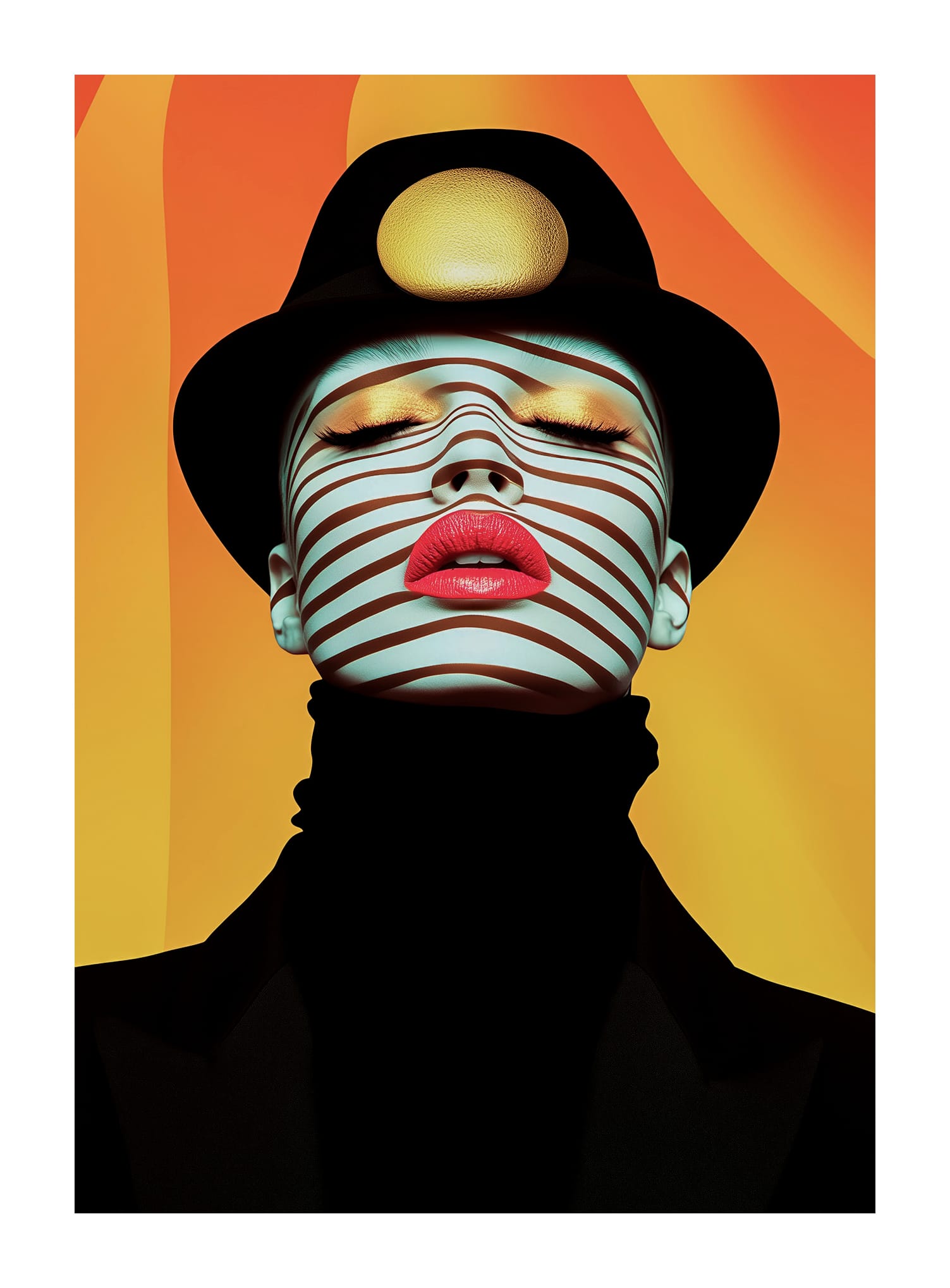 Don’t miss the opportunity to own a high-quality, limited-edition art print that blends modern fashion, surrealism, and optical art. Elevate your space with this bold and mesmerizing statement piece today.
